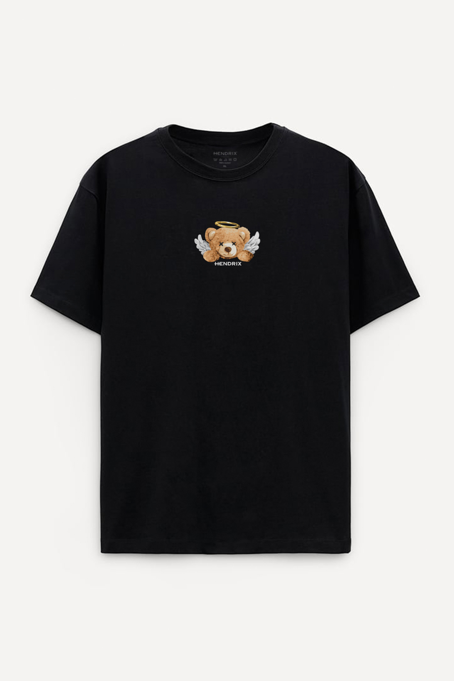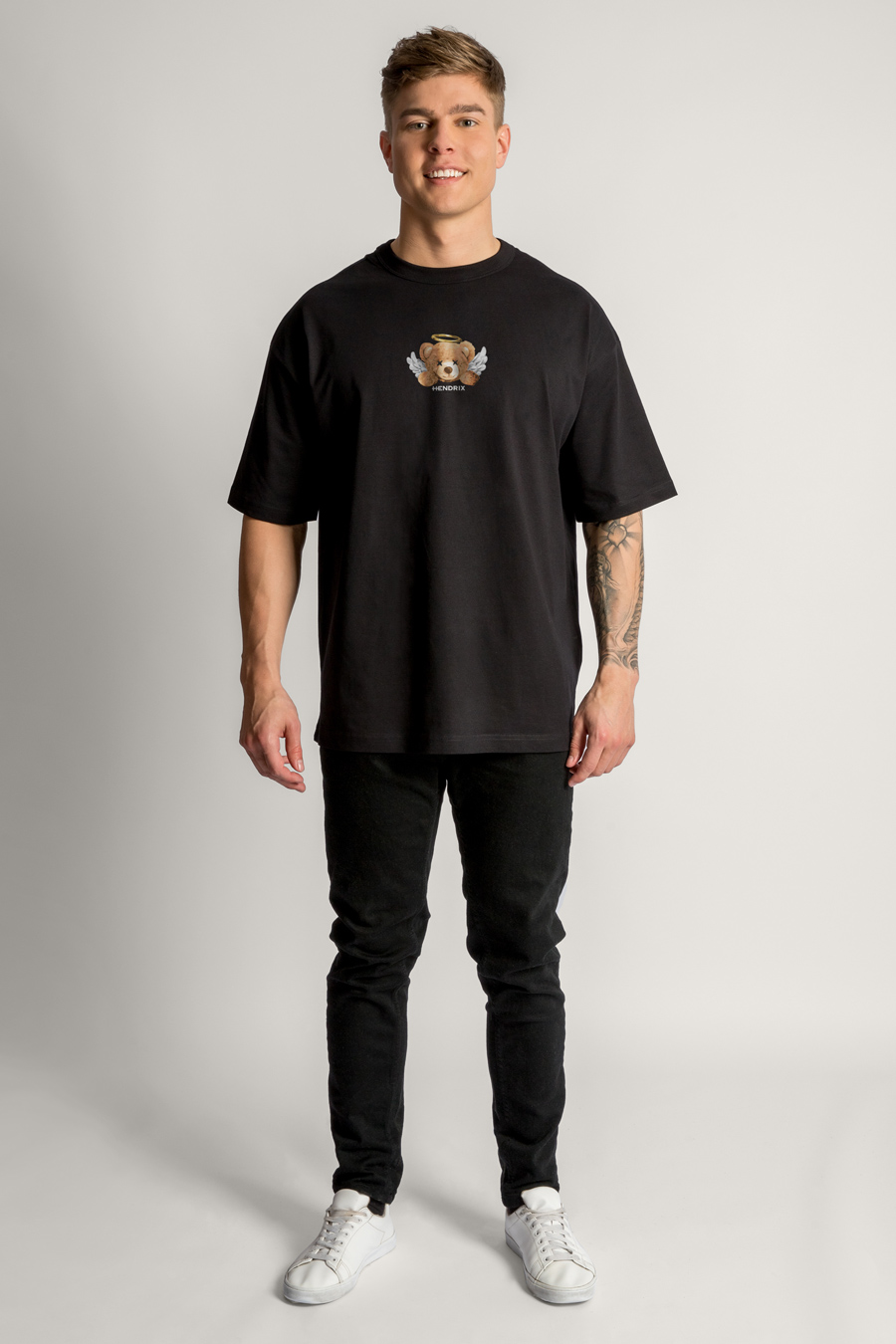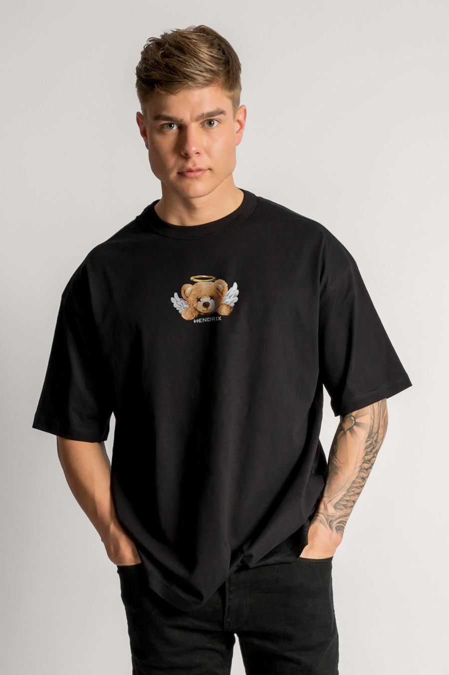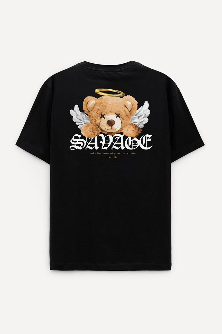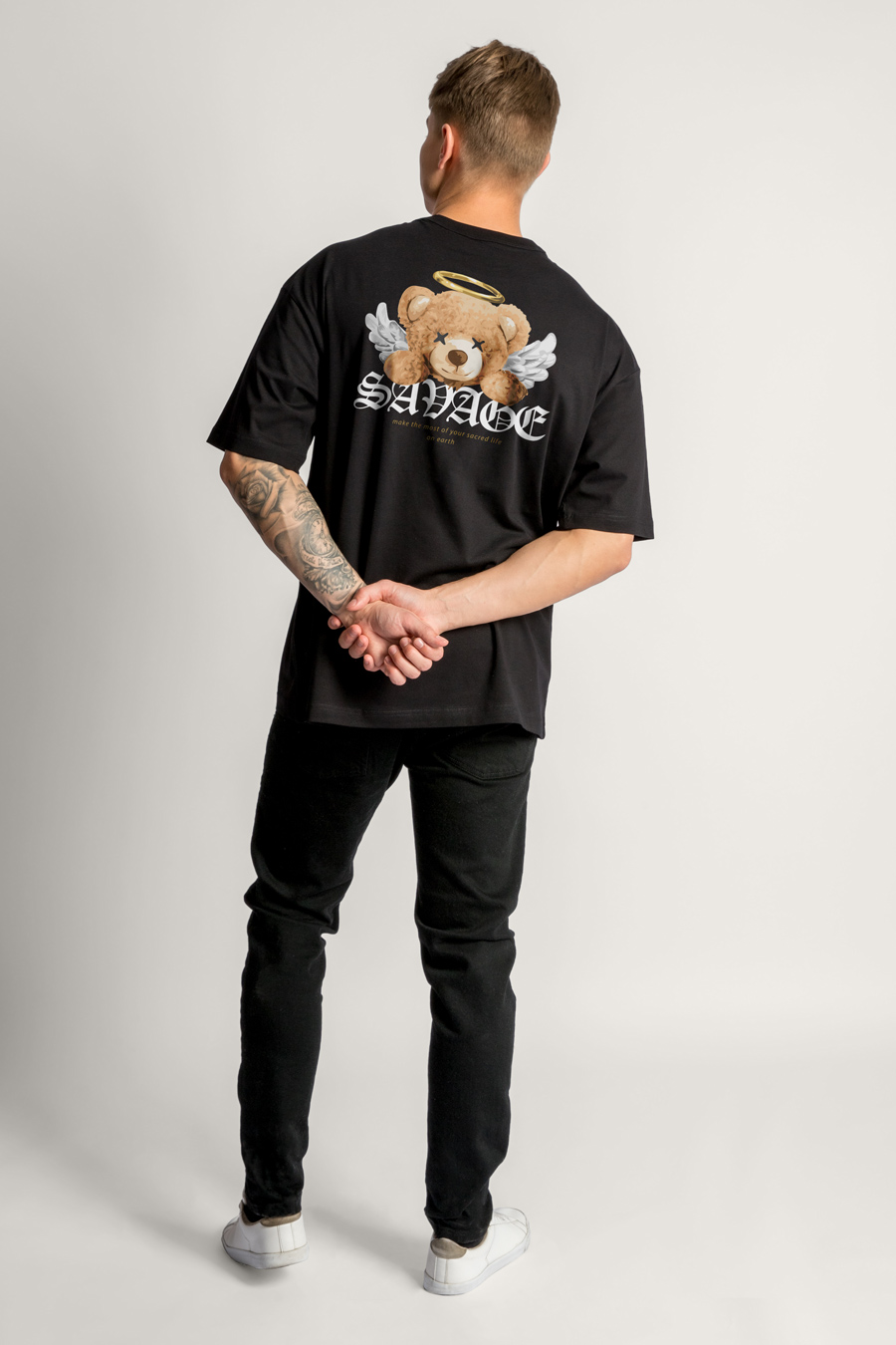 Oversized T-shirt in Black Color with Savage Angel Teddy Print