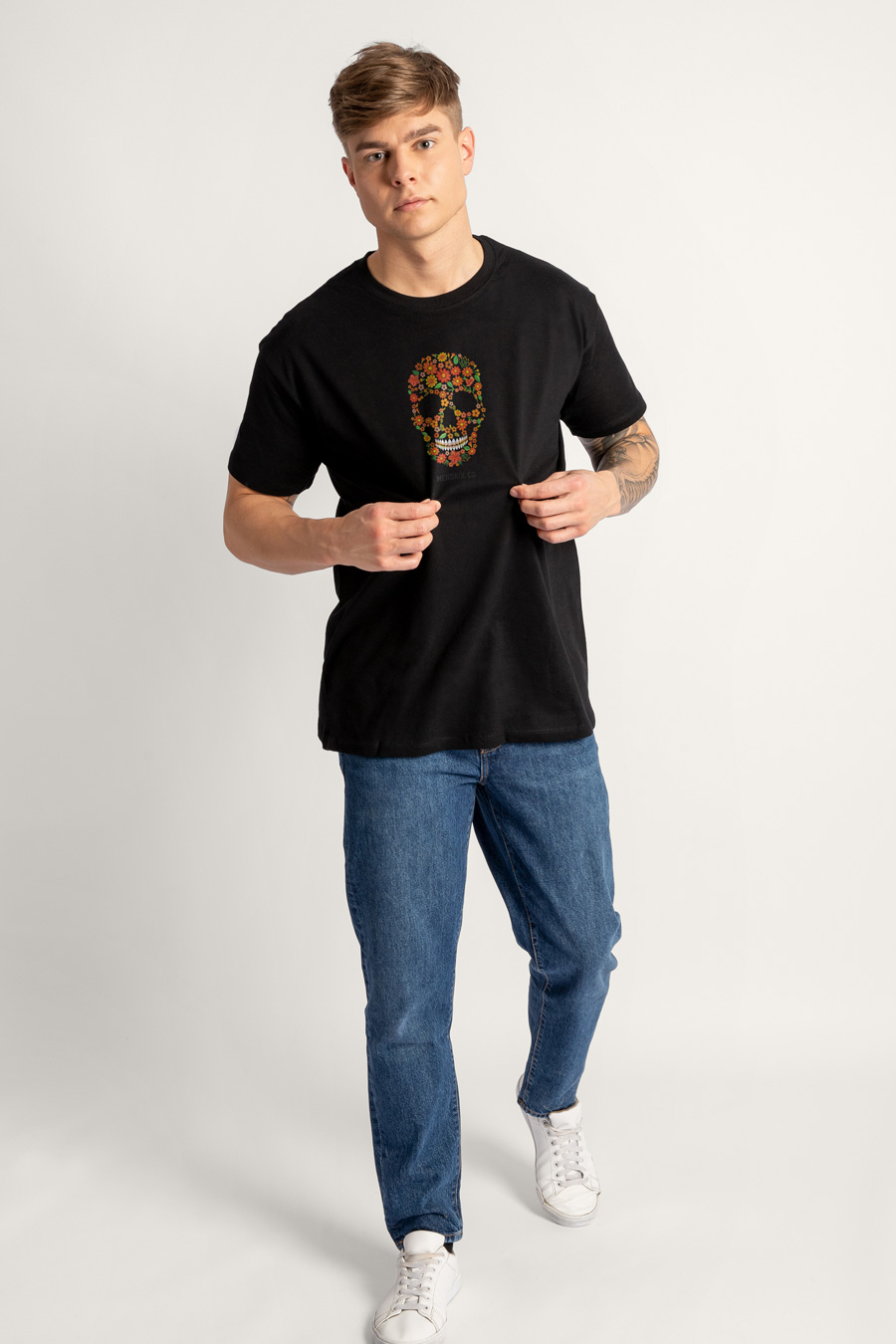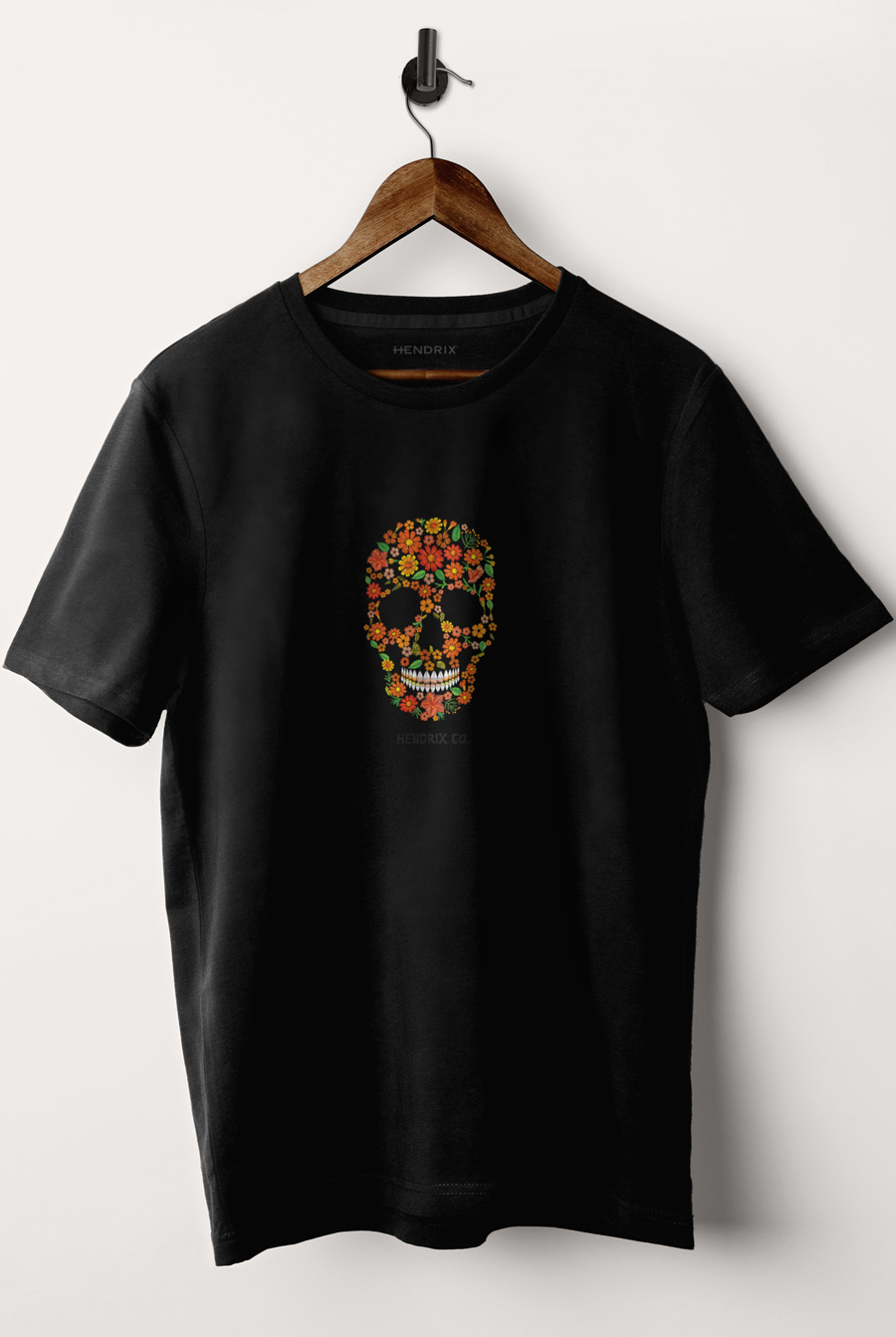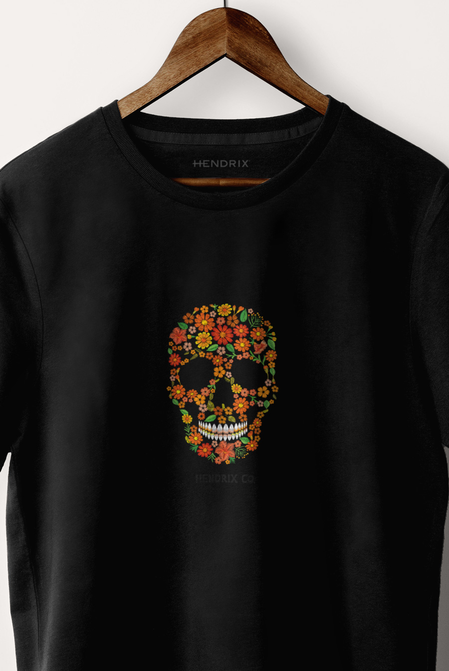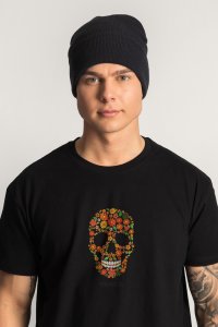 T-shirt in Black Color with Floral Skull Print